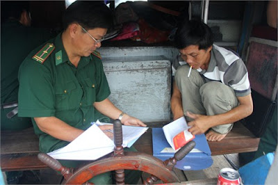 Biên phòng tỉnh đang ghi lời kể của thuyền trưởng Đức